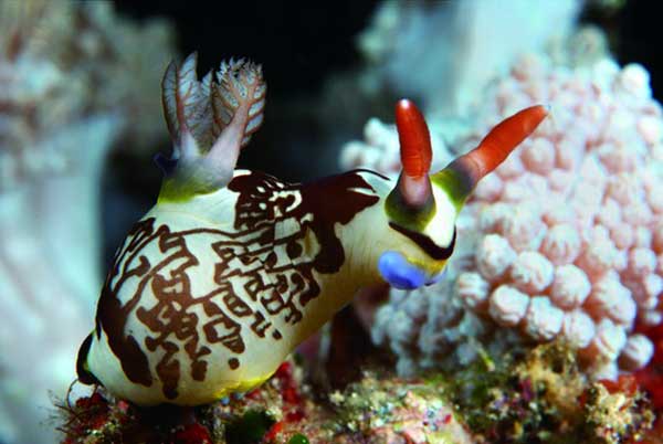 看看这只海洋小精灵,它警惕地竖起两只“耳朵”——在这一瞬间,它是不是活像一只蹲在地上竖着一对耳朵的小花兔呢?其实这就是罗马文献中描述的神奇海洋精灵——海兔。日本人称它为“雨虎”。事实上,它和我们常见的兔子亲缘关系很远,它是一种软体动物而不是哺乳动物。它头顶的两个可爱的突起也不是“耳朵”,而是触角。这两对触角分工十分明确,前面一对稍短,专管触觉;后一对稍长,专管嗅觉。