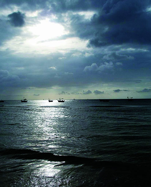 凌晨6点多我们爬起床。到达海边的时候,天仍然很黑,海边站了不少等着看日出的人,他们在黑暗中兴奋走动,看起来有点像皮影戏。海浪汹涌扑岸,可是过了很久,太阳就是不出来。沙滩上停泊着的渔船却不管那么多,该下海的纷纷下海了。看那些渔民把一艘艘船从沙滩上拖到无边无际的大海当中去。我想这些日日与海相处的人,心里应有很多原始的诗意吧。突然大家喧哗起来,太阳终于初见端倪了。就在海那边,那轮我们看熟了的太阳,它淡淡地红了。它不是升起来的,而是好像在海上空的云层里显出身来。然后,愈来愈红,愈升愈高,愈来愈亮,直至亮到我们不能正视,海面已经一片大亮。于是我们起身,回旅馆,继续睡觉。