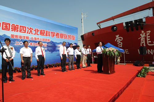 上午10时,在热烈喜庆的欢迎仪式中,领队吴军报告:中国第4次北极考察队完成预定的全部考察任务,安全返回祖国。